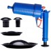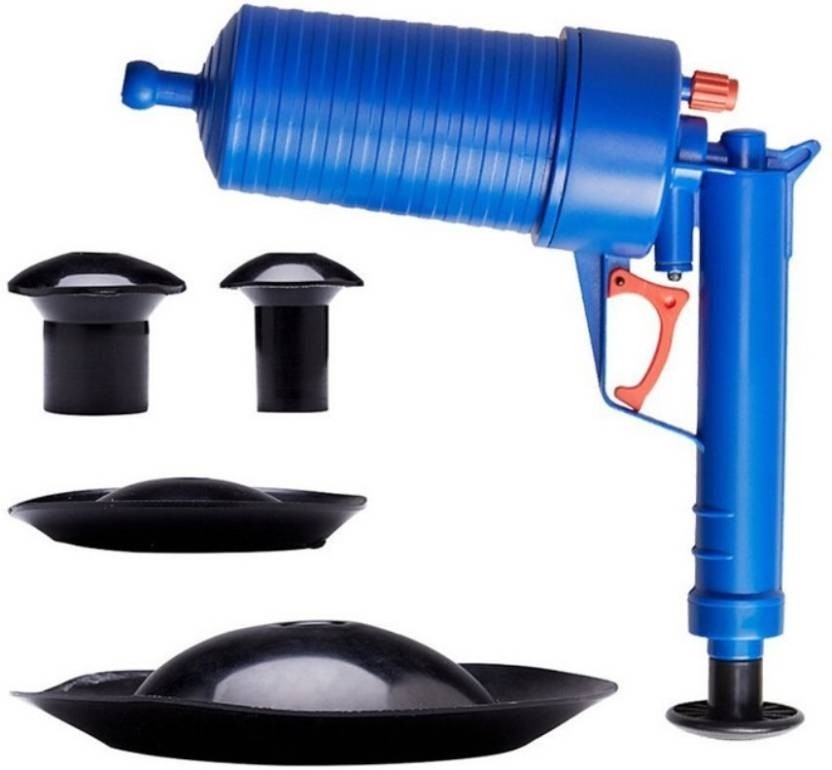 Acest aparat, puternic si practic, cu aer comprimat, foloseste puterea aerului pentru a desfunda tevi si chiuvete. Cu doar 30/35 de miscari se produce o presiune mare de 0,8 Mpa, suficienta pentru a debloca instalatiile. Nu utilizeaza produse chimice ,corozive. Beneficiem doar de legea fizicii care spune ca exercitand o presiune asupra unui lichid acesta o va transmite automat pana la extremitatea opusa. Astfel va genera o unda rapida si puternica, suficienta pentru a indeparta obstacolele din obiectele sanitare. Aveti la dispozitie 4 adaptoare ce va permit desfundarea mai multor tipuri de tevi: de la baie la bucatarie sau pe terasa. Aparatul este dotat cu o valva de protectie care intra automat in functiune in cazul suprapresiunii evitand astfel improscarea cu lichide sau resturi.
