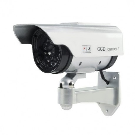 Recomandam clientilor nostrii camera de supraveghere falsa pentru exterior, ce beneficiaza de 1 LED IR fals ceea ce face ca acest model sa arate foarte real. Aceste camere false de supraveghere, nu sunt folosite pentru a va proteja proprietatile, dar au un efect preventiv foarte avantajos. Instaland aceasta camera de supraveghere falsa, profiti din plin de prevenirea spargerilor sau furturilor. Cu ajutorul panoului solar, situat pe partea de sus a camerei, LED-ul este alimentat continuu iar bateriile se incarca automat pe timp de zi. Cu suficienta lumina nu mai aveti nevoie de baterii reincarcabile pentru camera de supraveghere falsa. Detalii generale camera supraveghere falsa cu panou solar: