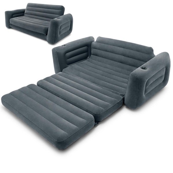 Datorita celor doua compartimente deplasabile, Canapeaua Gonflabila Intex 66552, ofera posibilitatea de extindere, ajungand pana la 224 cm lungime, astfel ca poate fi oricand transformata intr-un confortabil pat pentru doua persoane.Suprafata placuta la atingere - vinil plusat (nu aluneca lenjeria)