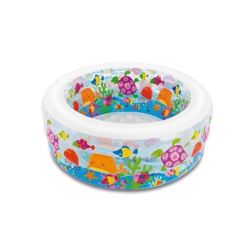 Piscina Aquarium Intex 58480 este confectionata din PVC rezistent, cu imprimeu atragator pentru orice copil, cu tematica marina.