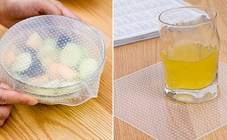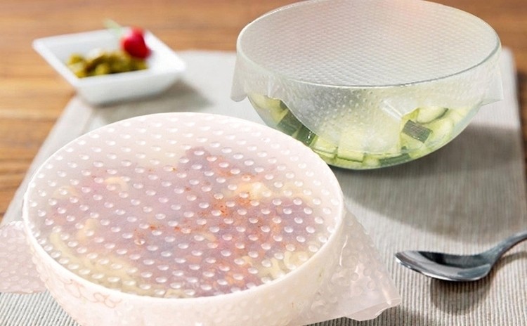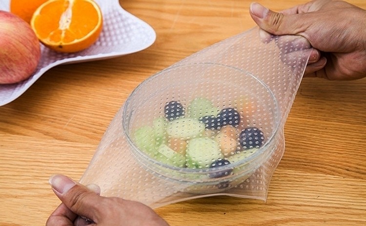 Se intinde folia Stretch and Fresh cu partea cu bule in sus - si se aseaza pe fiecare parte pe recipientul dorit. Dupa folosire, foliile se pot spala foarte usor manual sau la masina de spalat vase.Pachetul include 4 folii de silicon Stretch and Fresh: